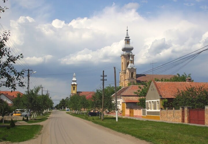 Clădirea bisericii ortodoxe sârbești este una impunătoare în peisajul locului. A fost construită în perioada 1900-1901, după proiectul arhitectului Momčilo Tapavič din Bačica. Probabil că măreția bisericii sârbești – cu trei turnuri, dintre care cel central cu o înălțime de 20 m – a fost o replică a măreției clădirii bisericii rămasă românilor, aceasta din urmă având însă un singur turn. Printre cele treizeci de cărți religioase ale bisericii, câteva din perioada sec. XVII-XVIII sunt adevărate comori ale patrimoniului creștin ortodox bănățean. Totuși, un reprezentant al comunității sârbe și cel care se îngrijea de biserică se plângea de infiltrațiile de apă datorate amplasării pe un sol impropriu, dar cel mai mult de… hulubi, care aduceau mari stricăciuni și nu reușeau să-i alunge cu niciun chip.