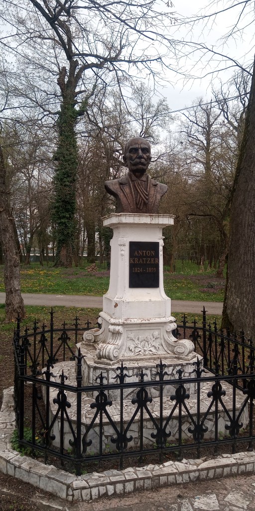 Amenajarea parcului este meritul judecătorului localității, din perioada 1882-1887, Kratzer Antal, al cărui bust te întâmpină la intrare. Evident că nu aveam habar…dar și pentru asta există internetul.