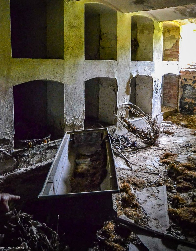 De istoricul mausoleului mai amintesc doar resturile de veșminte liturgice şi steaguri bisericești, cărți de rugăciuni sau partituri religioase. Geamurile au fost sparte pe rând, lăsând să intre înăuntru ploaia și zăpada. Din cauza infiltrațiilor, acoperișul a crăpat, mausoleul fiind invadat de sute de porumbei, care și-au făcut aici cuiburi. Astfel, murdăria porumbeilor a desăvârșit aspectul de degradare totală în care a ajuns imobilul.