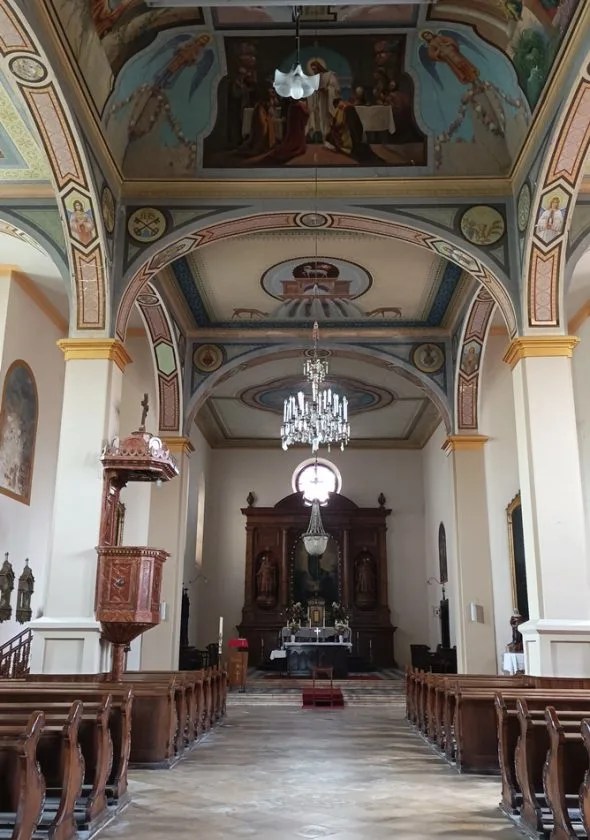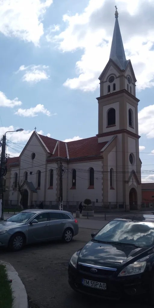 Biserica Romano-Catolică „Sfântul Wendelin” , aia din centru, este clădirea cu cea mai mare vechime din oraș. Ea a fost ridicată chiar în anul colonizării localității, adică 1766. Inițiativa i-a aparținut preotului Sebastian Blenkner, cel care a fost responsabil cu organizarea călătoriei coloniștilor veniți din regiunea aflată în partea de vest a Germaniei. În 7 iulie a avut loc realizarea fundației edificiului, iar în 9 octombrie s-a finalizat acoperișul. Meșterii răspunzători de ridicarea bisericii au fost Andreas Tobisch și Johann Jäckl din Szeged. Prima liturghie a avut loc în ajunul Crăciunului, în 24 decembrie 1766.