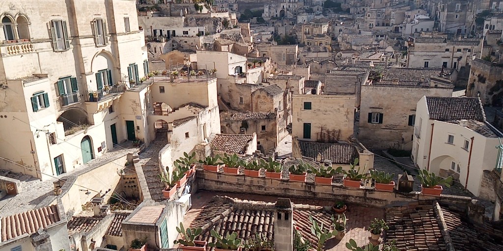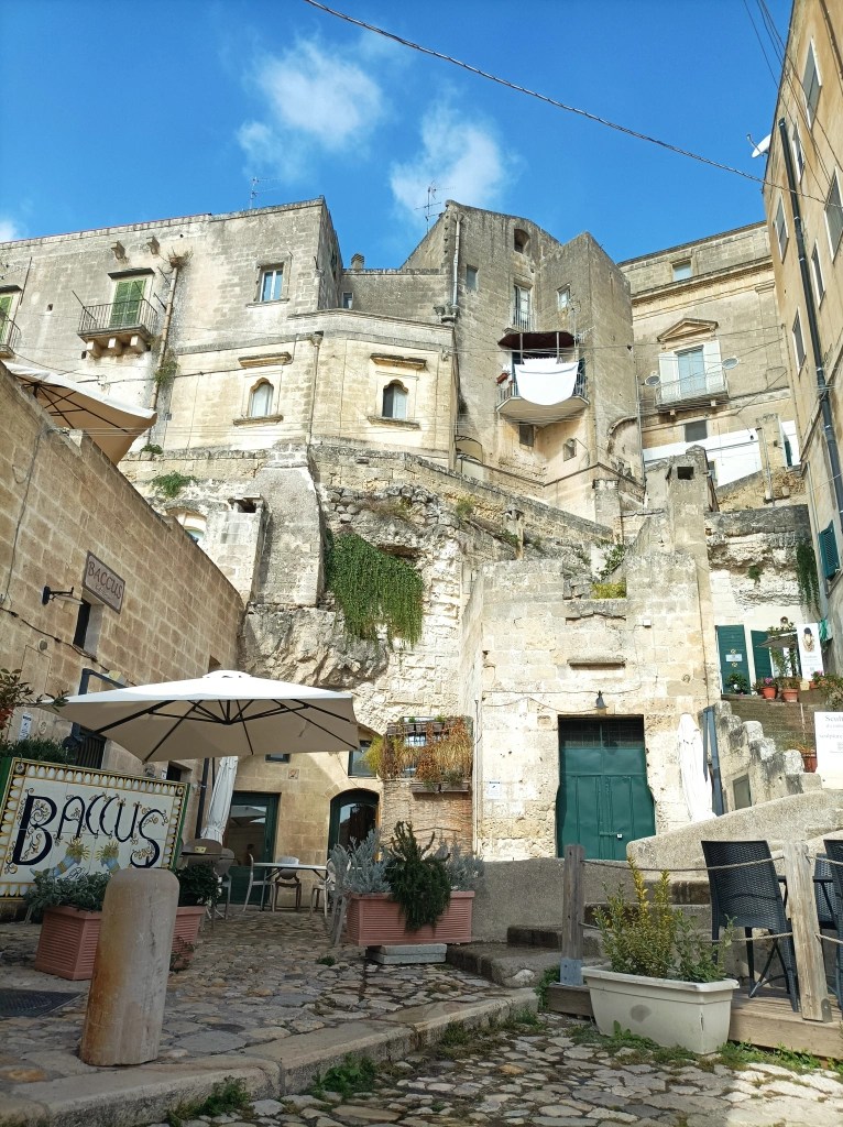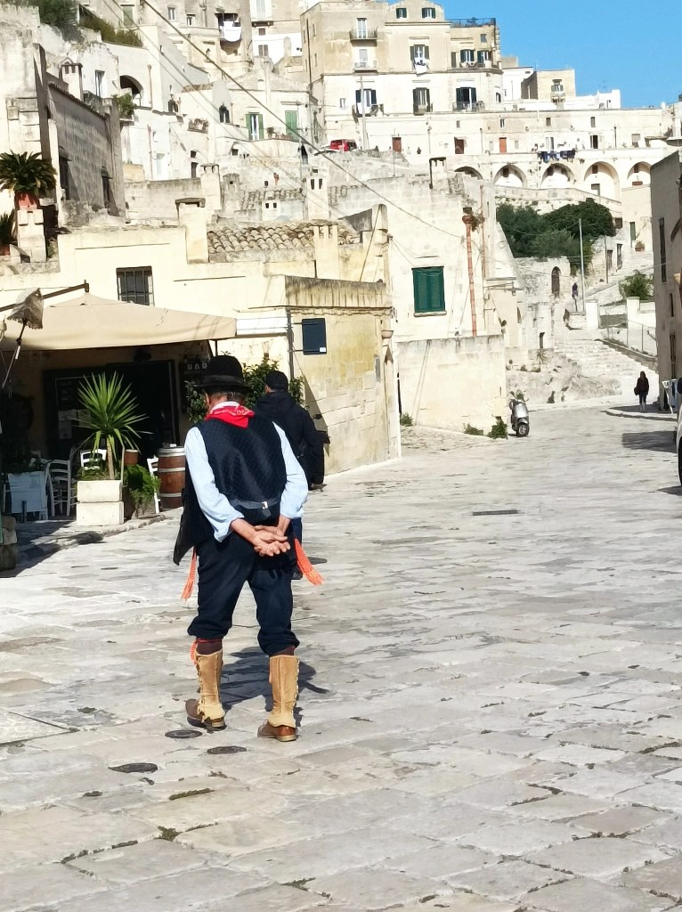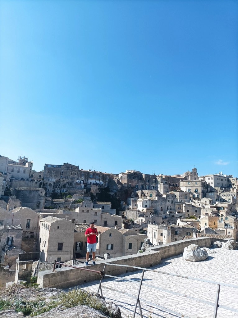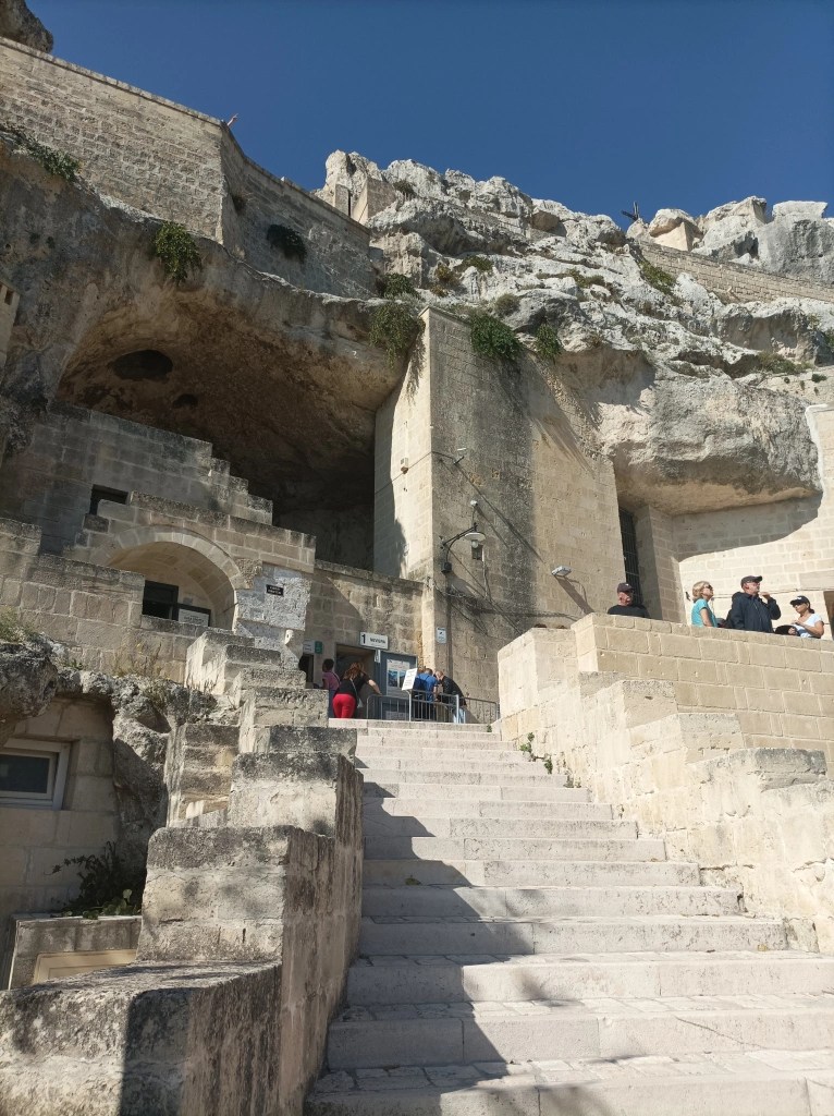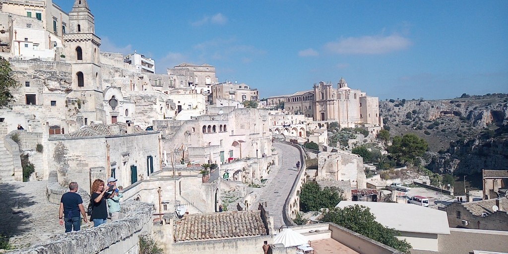 De la gară, cobori pe o pietonală, urmărind indicatoarele cu “Sassi Barisano”. Când am ajuns într-o piațetă centrală și am privit în jos am uitat tot ce am văzut și citit vreodată – eram John Necunoscutul cu buletinu-n mână!. Matera îți taie răsuflarea, te fascinează, te intrigă și îți obosește picioarele de mama focului, de parcă mergi pe tăciuni – urci, coborî, iar urci și tot așa pe o metaforică scară a istoriei. După Petra, din Iordania, Matera este a doua cea mai veche așezare din lume locuită neîntrerupt. Locuințele sunt săpate în stâncă și se numesc “Sassi di Matera”, iar din 1993 se află în patrimoniul UNESCO. În câteva dintre ele se locuiește încă. Altele sunt transformate în magazine, cafenele și restaurante și chiar hoteluri. Dar cele mai multe, din păcate, sunt lăsate în paragină.