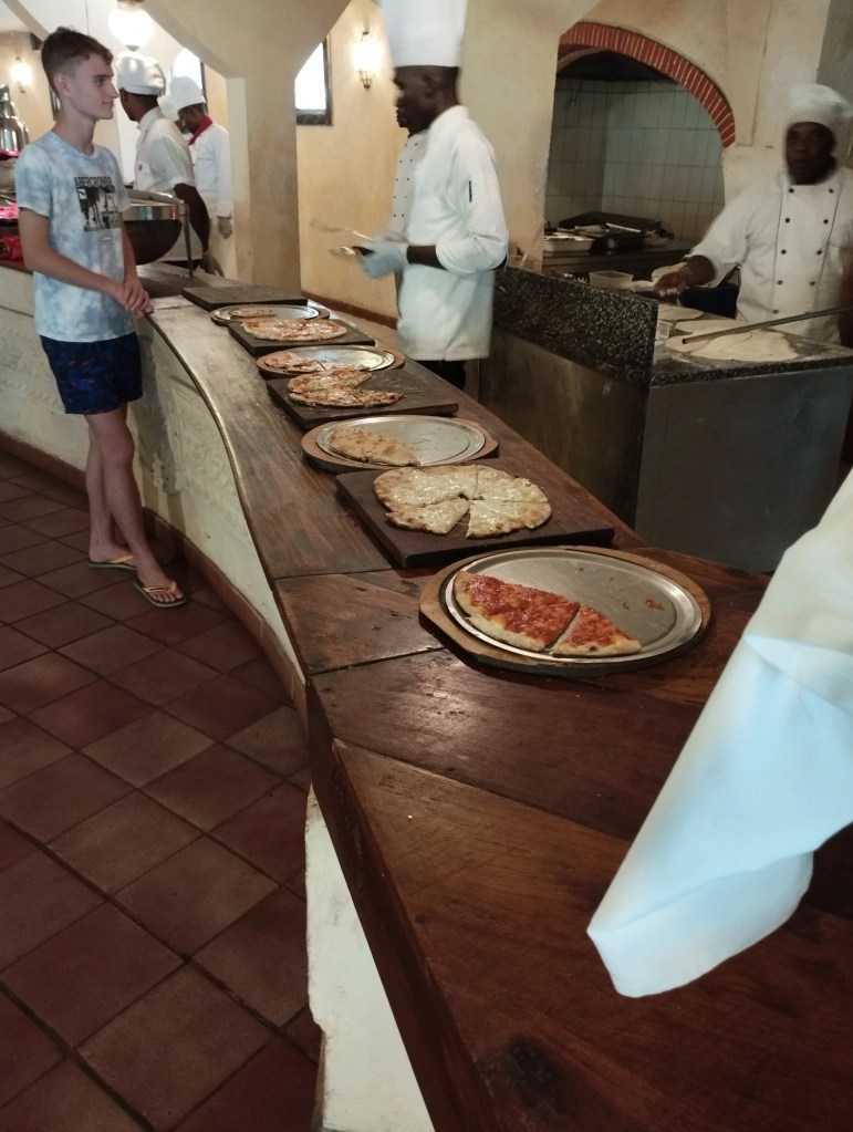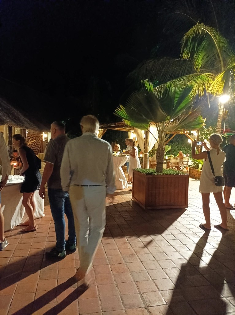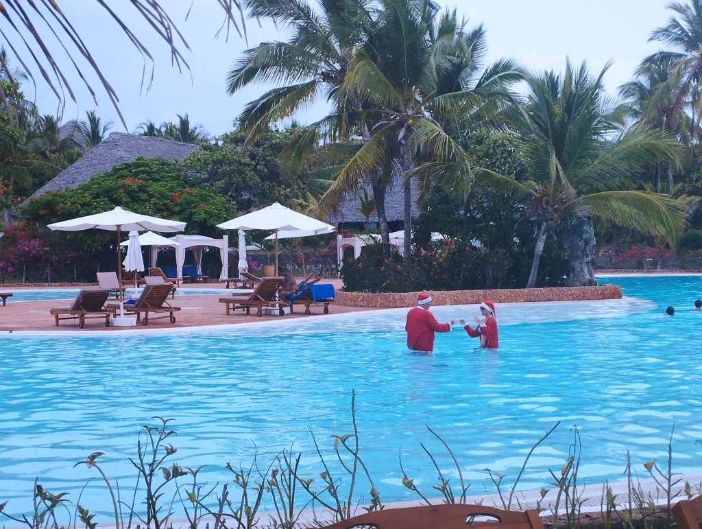 Surpriza cea mare a fost petrecerea de Crăciun, cu cină servită pe malul oceanului, urmată de o scenetă tematică cu nașterea lui Isus, pusă în scenă tot pe plajă. Am avut și iesle, măgar și capre, venit-au și magii… numai fecioara și pruncul erau din alt film, fiind de culoare… Nu găsiseră nicio turistă cu plod mai mititel, așa că au adus ce au găsit și ei prin satul învecinat… Apoi discotecă la piscină… să vezi ce se “ondulau” băieții masai pe lângă niște doamne mai trecute, plecate cam singure din Italia…
