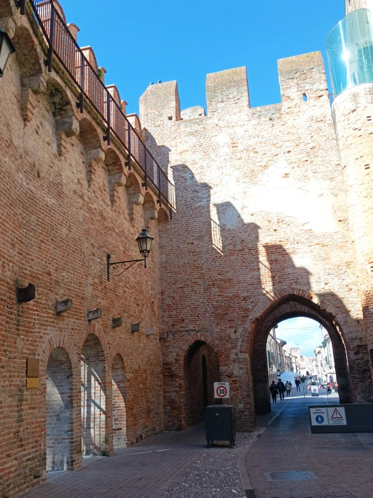 Cele patru porți ale Cittadella servesc ca un reper ușor de orientare în explorările centrului istoric. Noi am intrat prin poarta Padova, venind dinspre gară. Am străbătut centrul în linie dreaptă și am urcat pe ziduri prin poarta Bassano. Te vei opri de multe ori pentru a face fotografii din orice unghi posibil al porților, înmărmuriți de arhitectura și frescele lor.