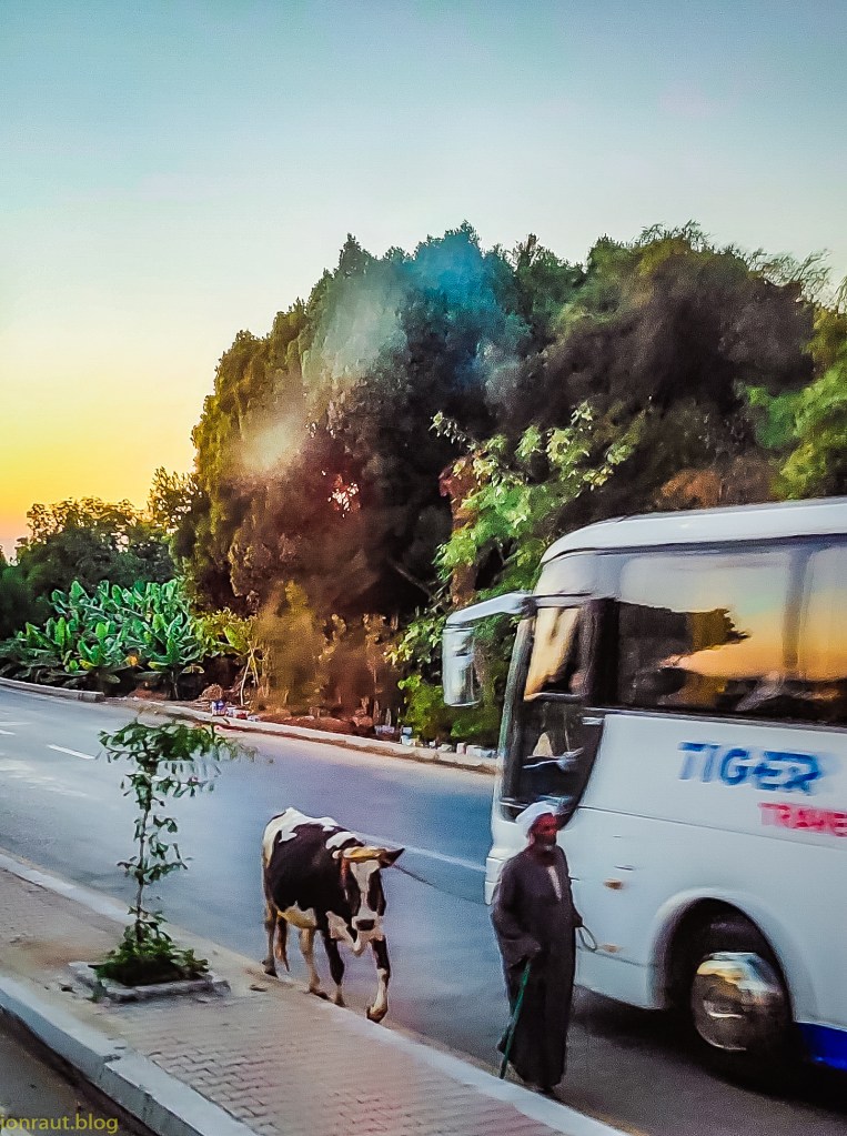 Bine de știut și că autocarele care pleacă pe distanțe mari, de sute de kilometri, cum este distanța de la Hurghada la Cairo, au anumiți timpi de parcurs între checkpointuri din momentul în care intră pe autostradă. Dacă nu ajung într-o marjă de întârziere de jumătate de oră sunt trimiși soldații după autocar. Când am traversat Nilul din Cairo în Gyza ca să ajungem la piramide ne-a preluat o mașină de poliție și ne-a escortat câteva ore, cât ne-am învârtit pe acolo pe la piramide și la restaurant.