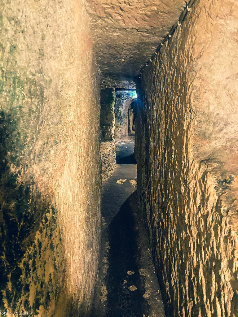 Trebuie avut în vedere că ceea ce vei vedea în subteran este rezultatul unui mileniu de folosință, după cum i-au tăiat capul la momentul respectiv. Sau după cum era nevoie: cimitir, închisoare, pivniță sau șopron pentru capre. Apogeul a fost atins în timpul perioadei romane, când comunitățile au folosit aceste catacombe predominant ca cimitir. Și uite așa, s-au îngropat la grămadă păgâni, creștini, evrei – ca o comunitate internațională a morții. Nu lipsesc semnele specifice etniei și decorarea locurilor de veci ca o marcă a teritoriului subteran. Rai, iad – nu mai conta, loc să fie pentru îngropat, cu oarece spațiu să-și mai schimbe piciorul de-i înțepenea în nemișcare… Avantaj pentru cei incinerați, că puteau sta lejer pe verticală în vasul lor.