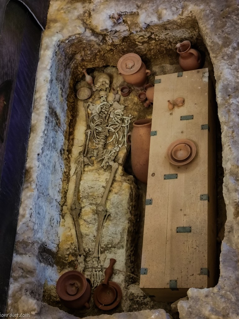 Si cum nici in moarte nu suntem egali si aici găsim o varietate impresionantă de morminte. De la cele luxoase, cu baldachin, ale elitelor vremii, până la mormintele simple, săpate în grabă de cei mai puțin norocoși. Un mormânt atrage atenția ca fiind, după inscripții si uneltele descoperite, al unui renumit cioclu al vremii. Adică mai mureau si ăștia, atinși de blestemele celor ghemuiți despuiați si la repezeală. Multe gropi au fost stricate fiind deschise in timp si buzunărite de valori. Fără prea mult succes – in afară de ceva scule legate de meserie, opaițe si lămpi cu seu de capră nu a fost altceva de procopseală. Cinstită lume se perindase pe insula malteză, dar săracă. Nu tu urma de „haur” ci doar ceva fer, si ala cu rugină, în ciuda afaceriștilor „romani” ai vremii.