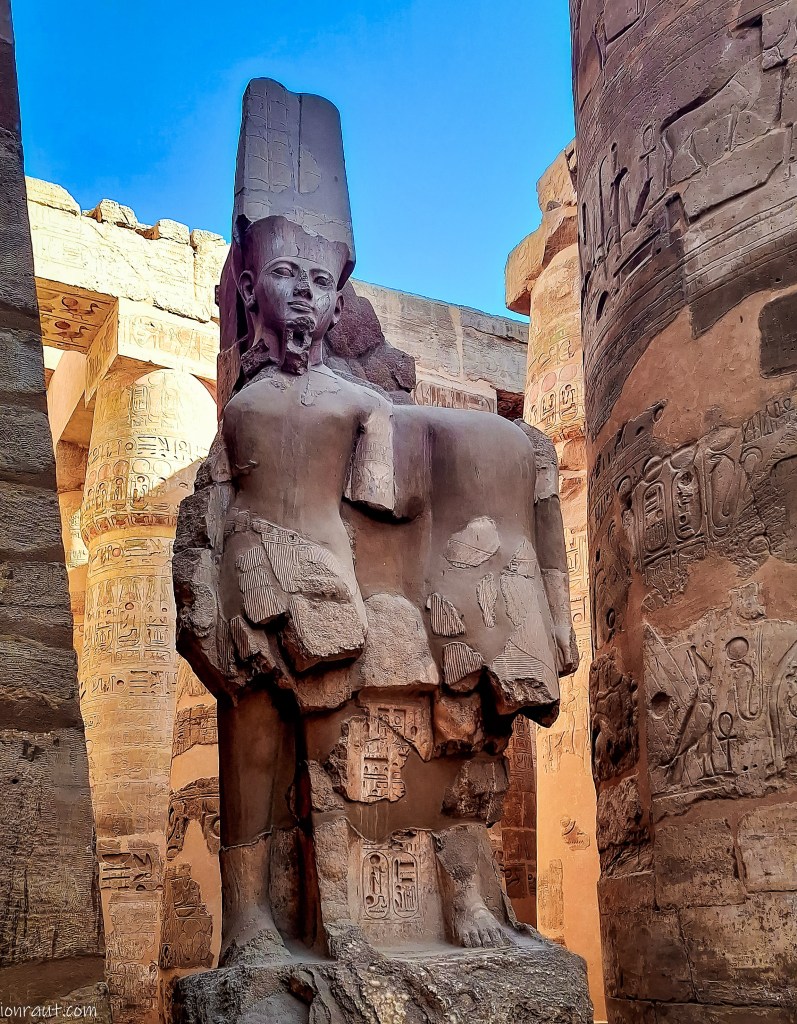 Putin după opt traversăm Qina, un orășel eminamente agricol și într-o oră intrăm într-un Luxor agitat de forfota dimineții. Templul dedicat marelui și atotputernicului zeu Amun Ra se arată în fața noastră în toată splendoarea sa. Primele raze ale dimineții curgeau pieziș pe zidurile sale superb decorate, iar un vânticel rece adia din când în când prin palmierii din jurul său, făcându-i să foșnească, șoptindu-ti la ureche istoria superbă a locului. Cred că acesta este cel mai mare și mai frumos templu din Egipt. Se întinde pe doi kilometri pătrați și a fost construit și extins de fiecare faraon în parte.