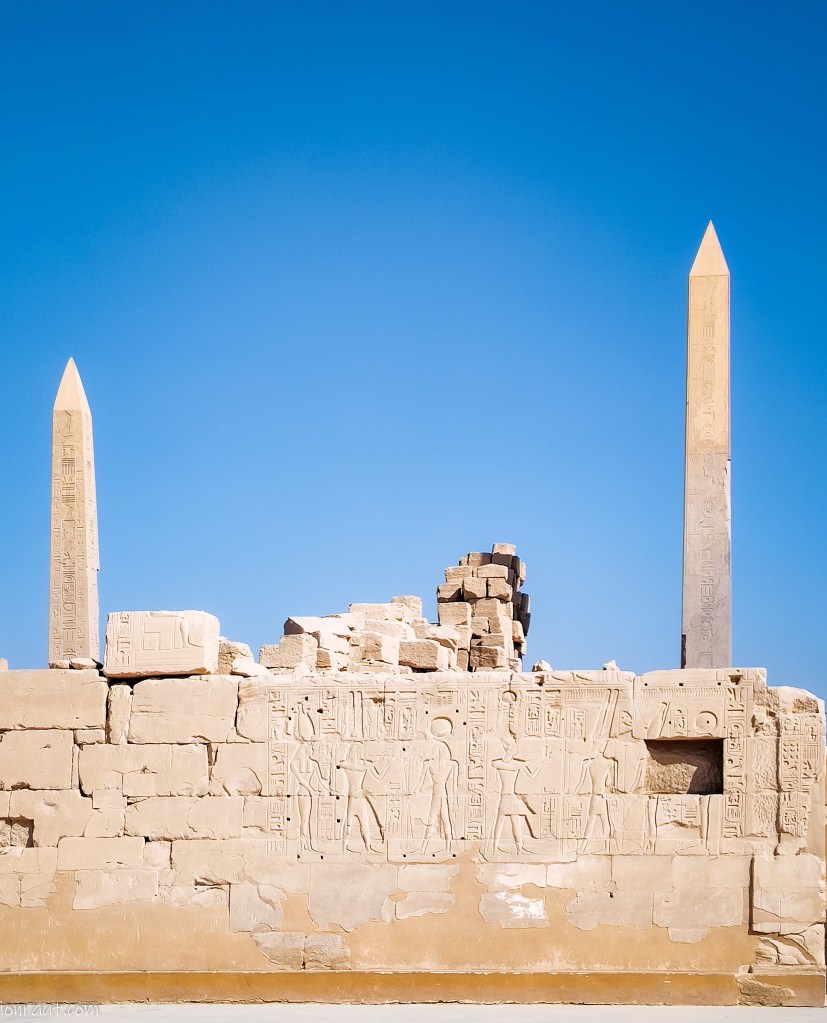 Atracția, pentru mine, a reprezentat-o povestea obeliscului reginei Hatshepsut care încă stă în picioare. Sub domnia ei s-au construit două obeliscuri din granit înalte de 30 m, pe care le-a acoperit mai apoi cu aur. Dintre cele două obeliscuri, doar unul se mai poate vedea, celălalt aflându-se în altă parte a complexului. În timpul împăraților romani, multe alte obeliscuri au fost transportate din Egipt în Italia. La capătul străzii Champs Elysee, amplasat în Place de la Concorde, se află un obelisc egiptean antic adus de la Templul din Luxor. Obeliscul a fost făcut cadou regelui Franței, Philip Louis nu știu cât, de către Mohamed Ali (nu boxerul!) care a primit în schimb un ceas care nu a funcționat bine niciodată. Ironia sorții! Să nu mai vorbim de ce s-a „ciordit” de-a lungul timpului…