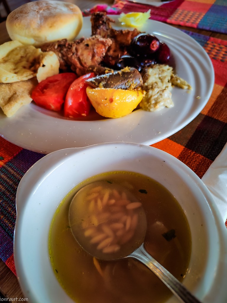 Lăsați pietonii, autocarul trecând deja pe malul stâng, am intrat să luăm prânzul la un restaurant cu specific egiptean. Mâncarea a fost inclusă în prețul excursiei, doar băuturile se achitau separat. Delicios bufetul, în ciuda faptului că ce-mi alesesem eu nu arăta în mare fel. Dar parcă prea multă vânzoleală, aproape de haos, pentru că veneau, mâncau și plecau grupuri și grupulețe nonstop. De nu erai atent iți lua altul lingura dinainte. Așa că am grăbit momentul ieșind primul, mai interesat de ce se vedea peste strada: Nilul.