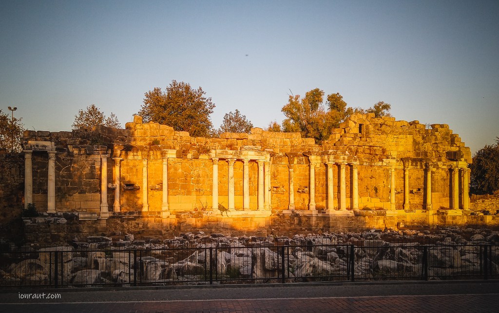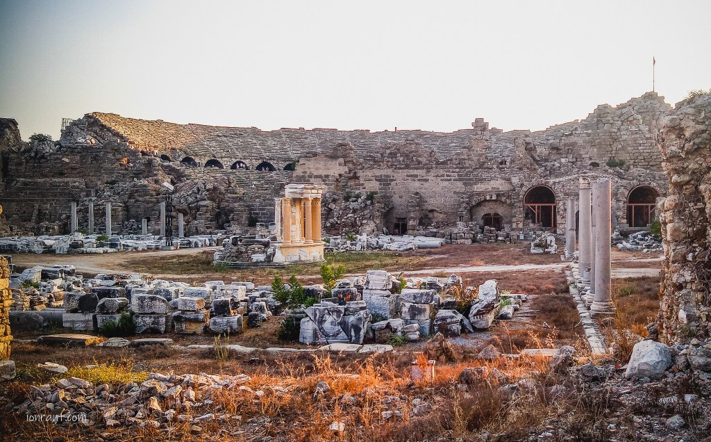 Teatrul Roman – Construit în secolul al II-lea d.Hr., rămășițele sale bine conservate sunt o dovadă a abilităților de construcție ale romanilor. Trebuie să fi fost un loc imens, deoarece încă arată în mare fel și acum. Amfiteatrul este situat în orașul vechi Side, chiar lângă muzeu. În perioada sa de glorie, putea găzdui la grămadă până la 15.000 de oameni. Imaginează-ți asta! Toată acea gloată urmărind cu sufletul la gură spectacole de circ. Le-o fi dat și pâine? Posibil, pentru că la cât se luptau gladiatorii, ei între ei sau parte în parte cu alte sălbăticiuni, ăștia nu mai plecau acasă. N-aveau reluări, cum să piardă ceva!