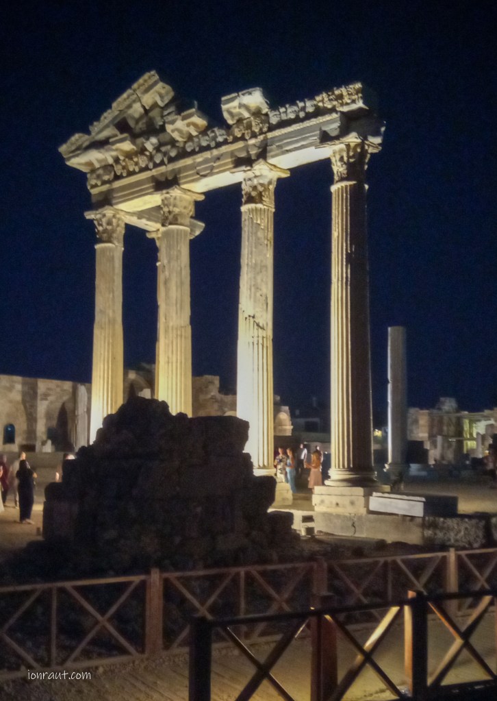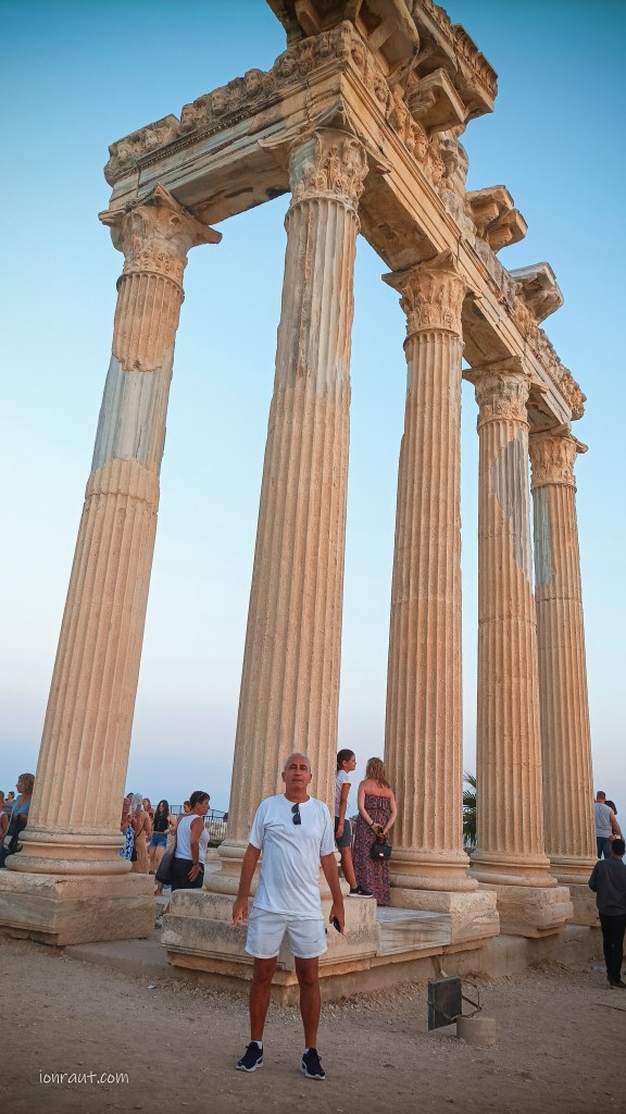 Templul lui Apollo – Side este recunoscut nu numai prin calitatea conservării monumentelor arheologice, dar și prin frumusețea și bogăția acestora. Printre cele mai apreciate de turiști sunt Templul lui Apollo și al zeiței Atena, construite integral din marmură și decorate cu coloane de inspirație corintiană. Ridicate în secolul II d.Hr., fiecare templu avea nu mai puțin de 11 coloane, dispuse pe fiecare latură, și șase coloane situate la intrare. Azi sunt cam „șchioape” de coloane, dar sunt în curs de restaurare.