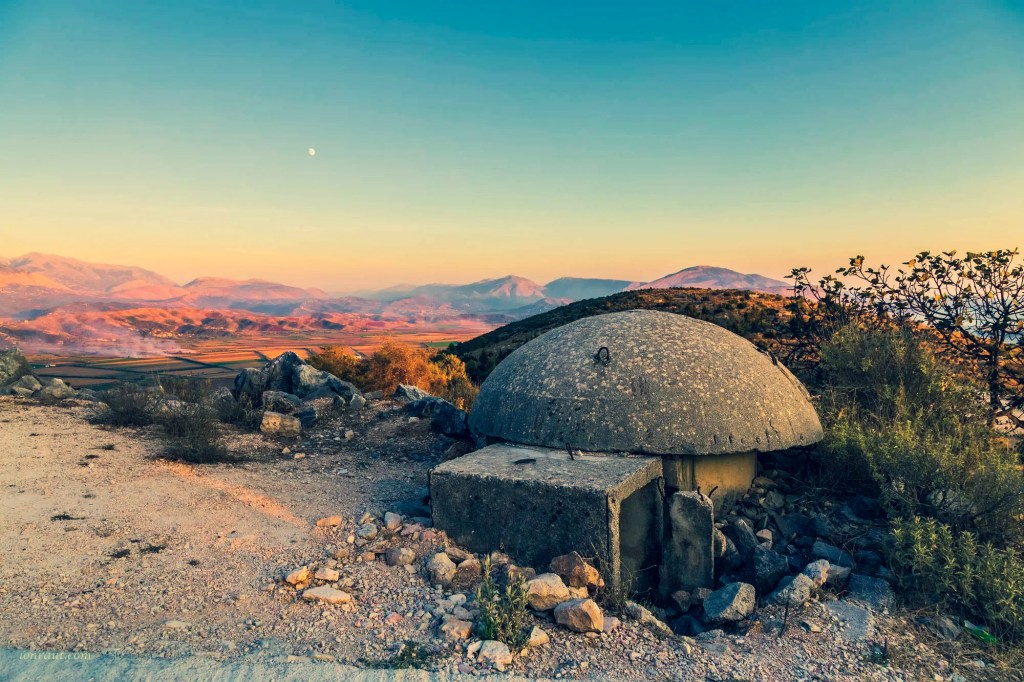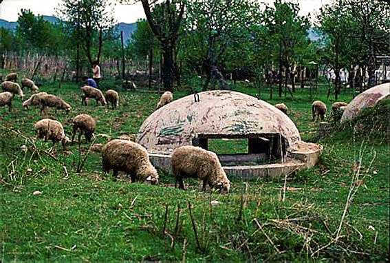 Cele peste 500.000 de buncăre construite în timpul regimului comunist al lui Enver Hoxha sunt încă împrăștiate pe întreg teritoriul Albaniei. Imaginea e chiar șocantă pentru turiștii care intră cu mașina din teritorii vecine și care au de-a face pentru prima oară cu istoria recentă albaneză. Dă-i și numără…