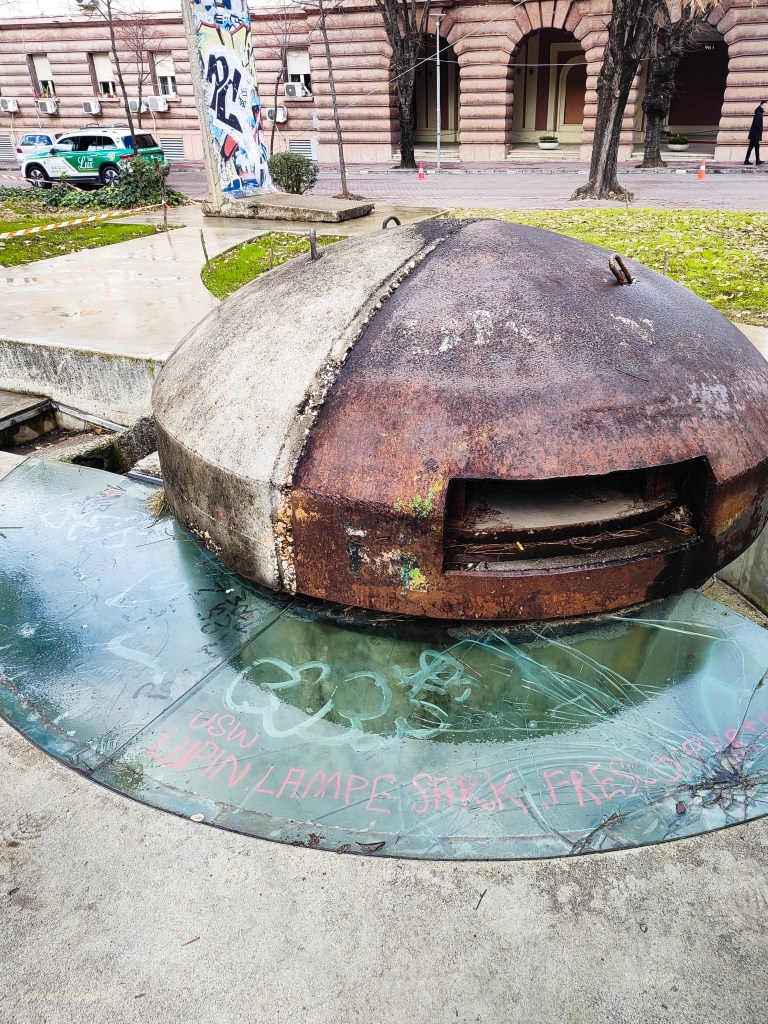 Chiar în capitala Albaniei, Tirana, langa piaţa cu nume dat de statuia eroului national, o cupolă de beton, cu un foişor de supraveghere postat lângă ea, atrage atenţia.