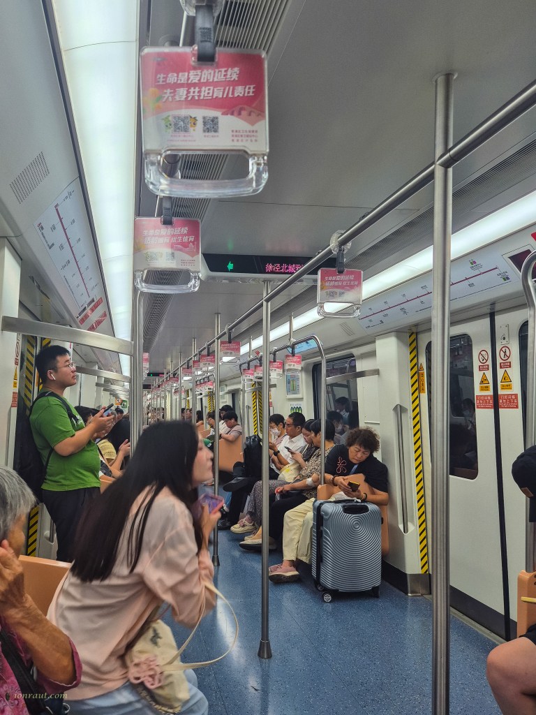 Permiteți-mi să vă mai explic că albii nu sunt des întâlniți în China. Adăugați la asta bagaje mari, rucsaci și perne de dormit, toate pe o linie de metrou care deservește un cartier muncitoresc, neturistic. E ușor să vă faceți o imagine a privirilor întrebătoare și amuzate care ne-au atins în ziua în care am ajuns.