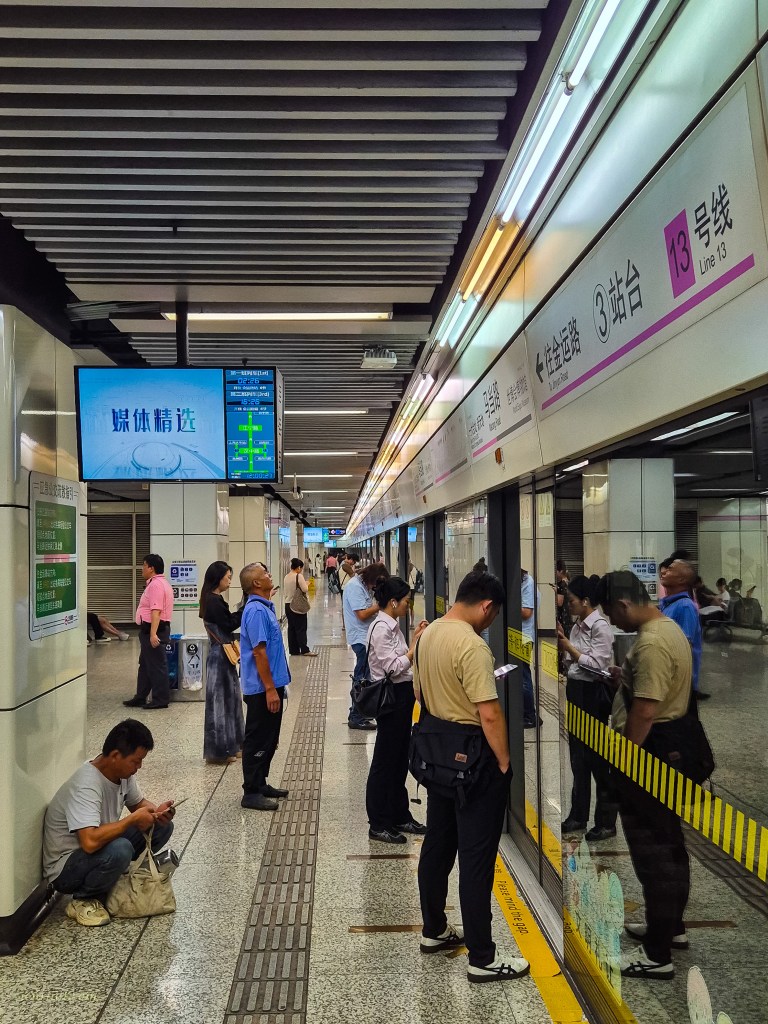 Din fericire, noi ca europeni suntem relativ înalți în comparație cu chinezii. Deci, avem puțin aer liber în partea de sus. Probabil nu e bine să ai 1,45 m în timpul orelor de vârf și să stai cu nasul la subrațul altuia. Partea amuzantă e că, în anumite stații, nu e haos doar pe peroane. Uneori trebuie chiar să stai la coadă… ca să intri în stația de metrou. Ei bine, joacă-o pe asta! Unde s-a mai pomenit să faci coadă pentru transport de la ieșirea din bloc? Cel puțin socializarea si contactul cu localnicii e cât se poate de strâns…